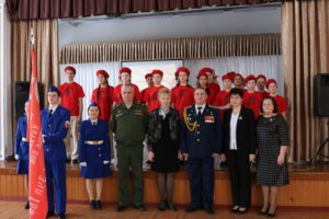 С поздравлениями и наставническими словами к ребятам обратились: начальник Управления по делам образования С.П. Попинако, военком Е.С. Красношлык, член Совета ветеранов Г.К. Кожевникова. На мероприятии почетным гостем был приглашен выпускник школы, Российский офицер, танкист, Герой Российской Федерации, участник боевых действий в Чечне О.А. Касков.